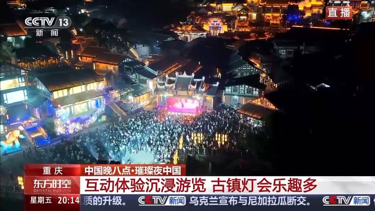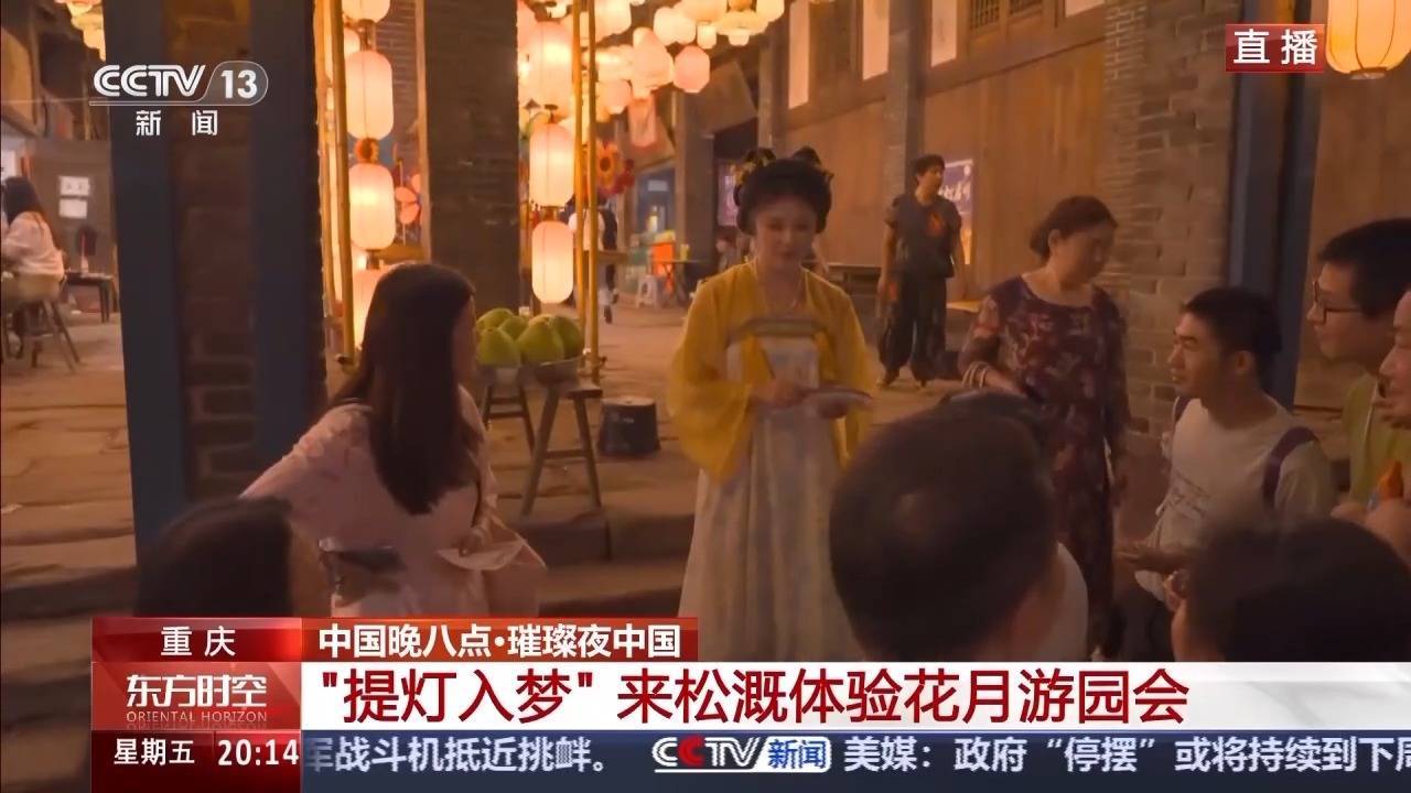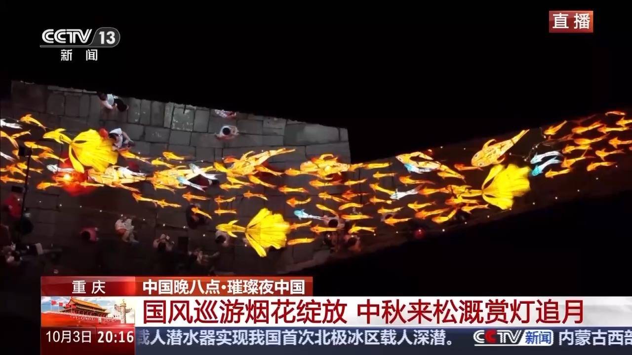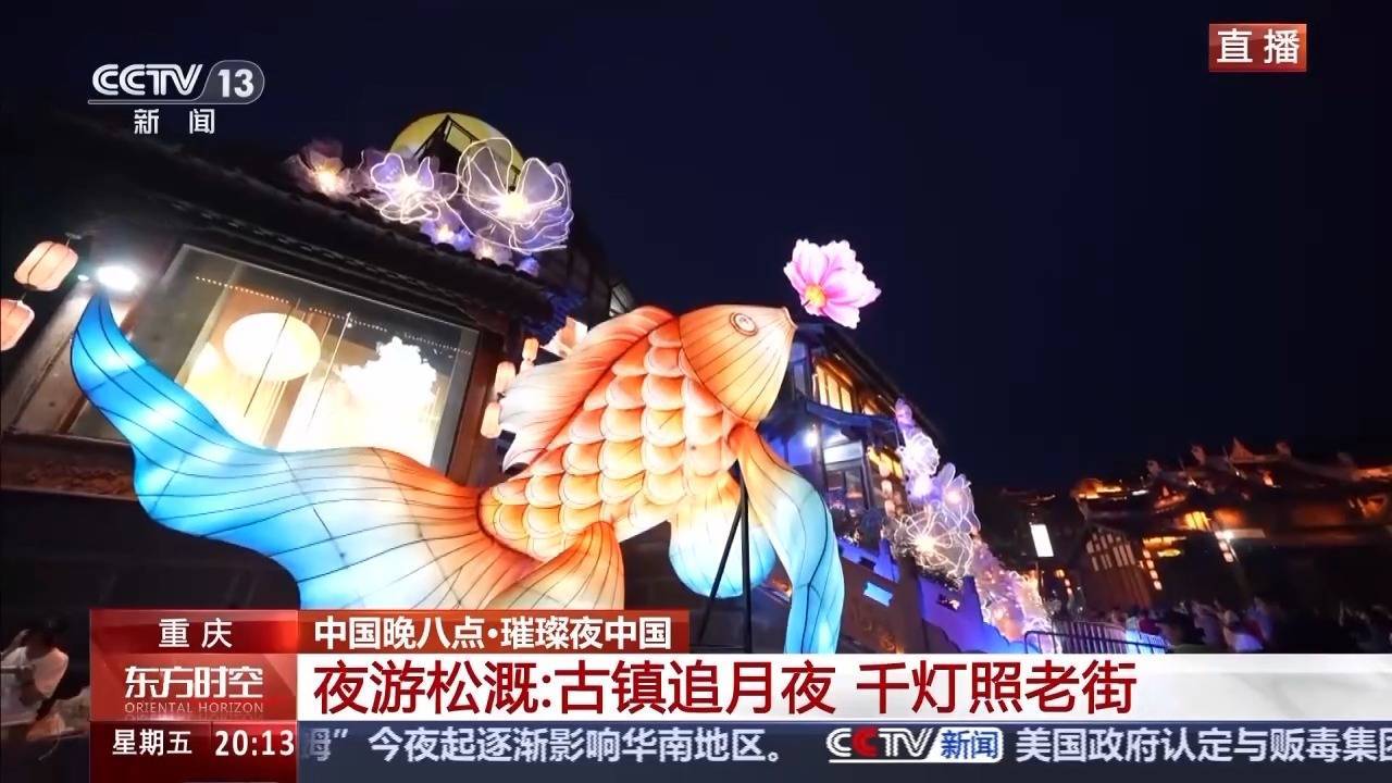 rr总台记者 陈杨:重庆市永川区的松溉古镇是我国西南地区目前体量最大、保存较为完整的明清时期建筑群。这里举办了一年一度中秋追月灯会,现场吸引了非常多的市民和游客前来观赏。和我国许多其他地方灯会的热烈和绚烂不同,松溉古镇的灯会多了一份古朴、松弛与惬意。比如花好月圆灯组,是以古镇吊脚楼为主体,配合明月、鱼灯、花灯和实景表演等,各种元素相映成趣。