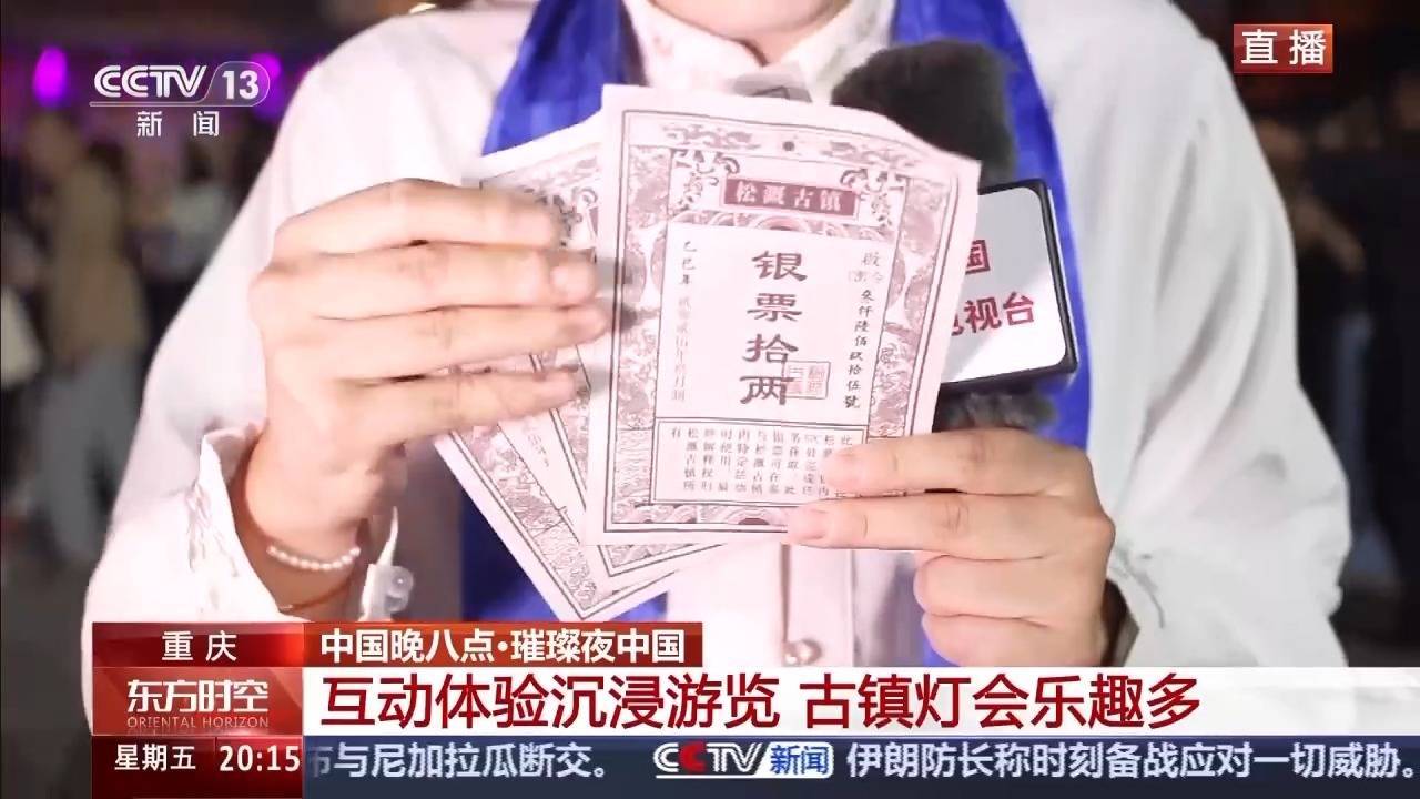 每位游客进入古镇都会领到3张“银票”,如果逛完灯会,手中银票总数超过30张,就可以到游客中心领取奖励。